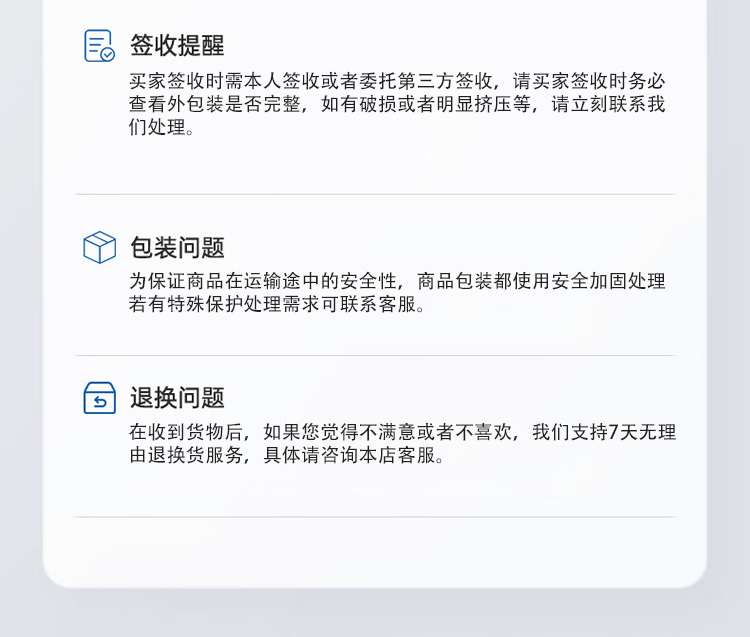 售后服务承诺:支持7天内无理由退货服务
