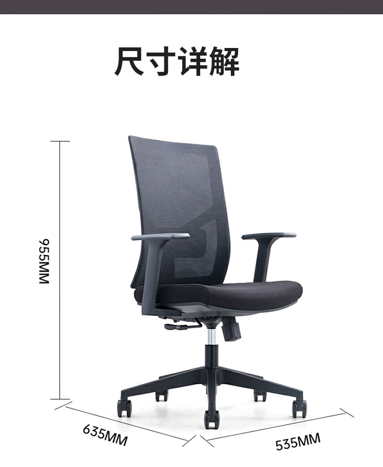 商品标题:圣斯顿CH-226B-LP办公椅635*535*955mm(把)黑色