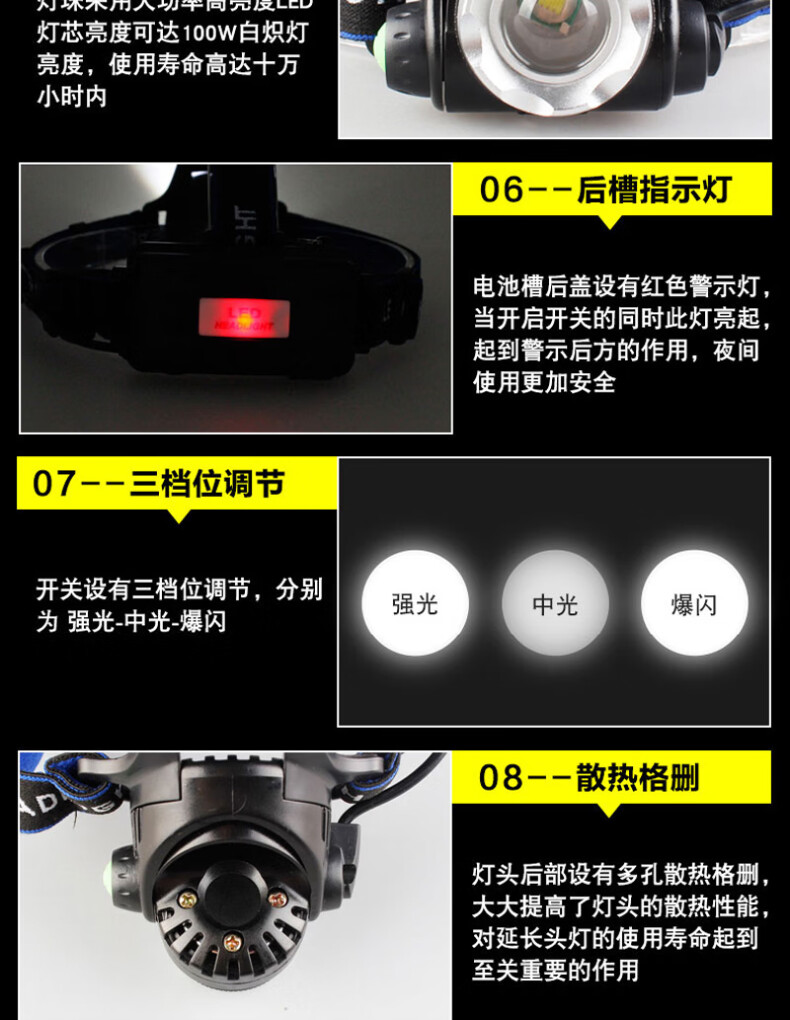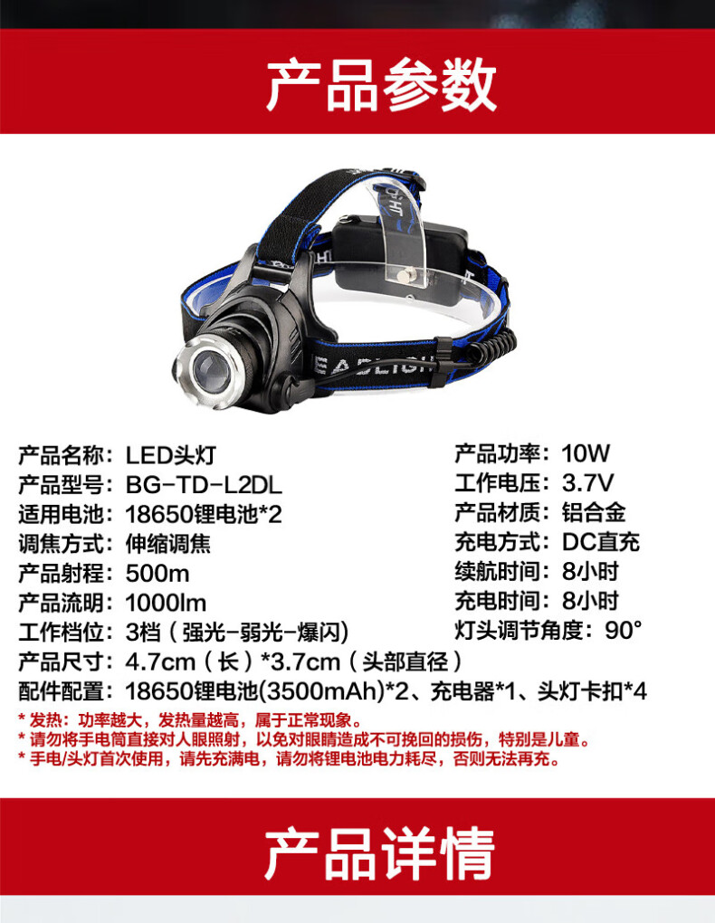 贝工 BG-TD-L2DL 10W 3档变光 LED高亮头灯 个