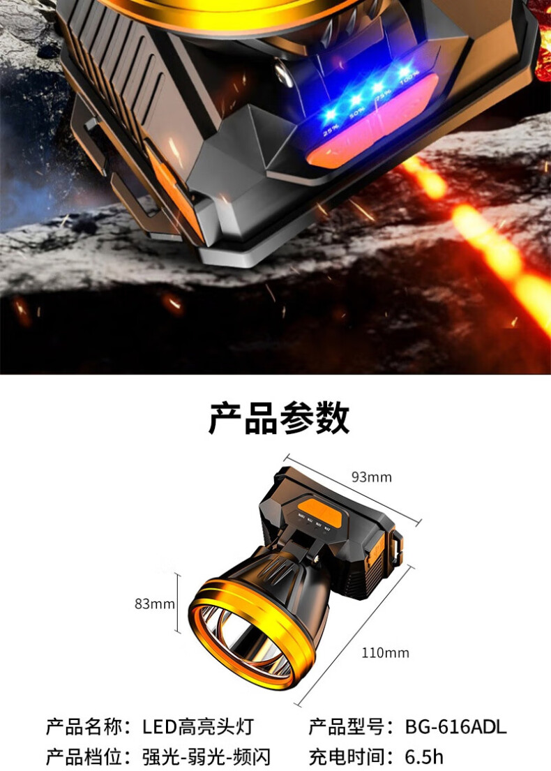 贝工 BG-616ADL 8W 3档调光 LED高亮头灯 个