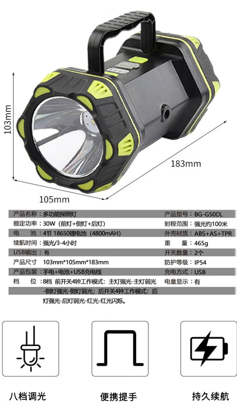 贝工 BG-G50DL 30W 8档变光 LED多功能探照灯 个