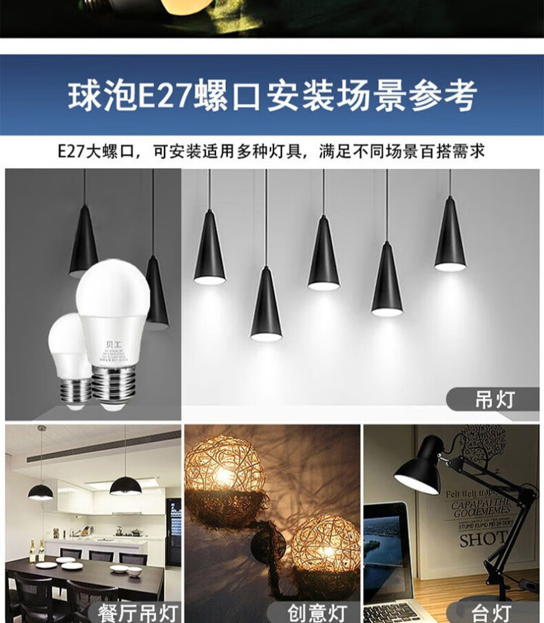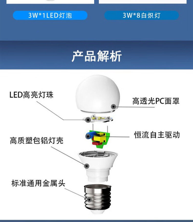 适用场景:E27螺口光源灯泡