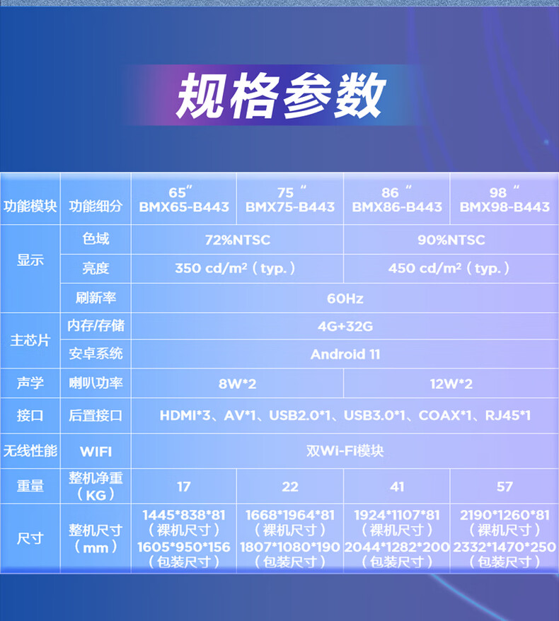 京东方BOE 灵语系列会议平板 BMX98-B443B非触摸智慧显示屏 高清防眩光 京东方98寸4K商显Android 11.0 四核 4G+32G含挂墙支架 (单位:台)