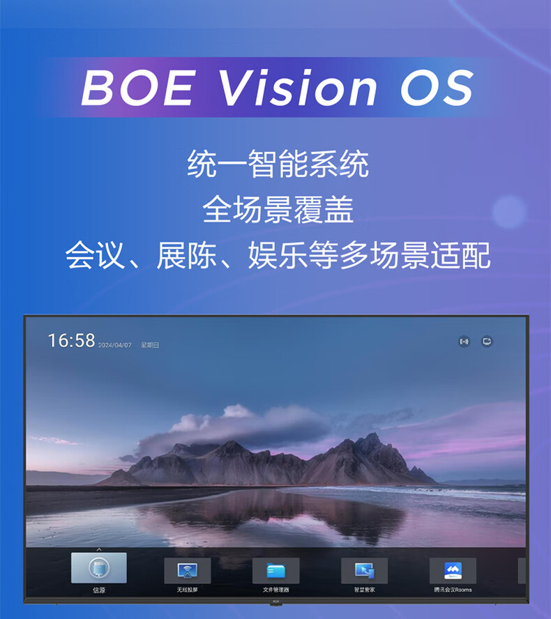 • 商品标题:京东方BOE 灵语系列 BMX98-B443B 智慧显示屏 多人同屏 高清防眩光 办公教学家庭多场景 (单位:台)