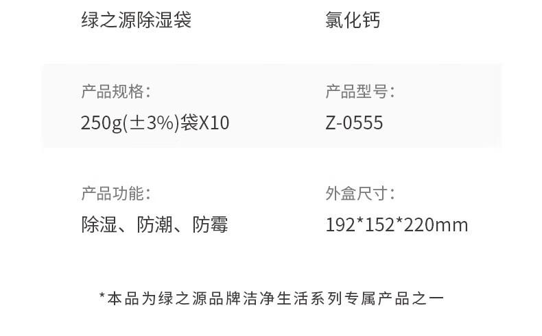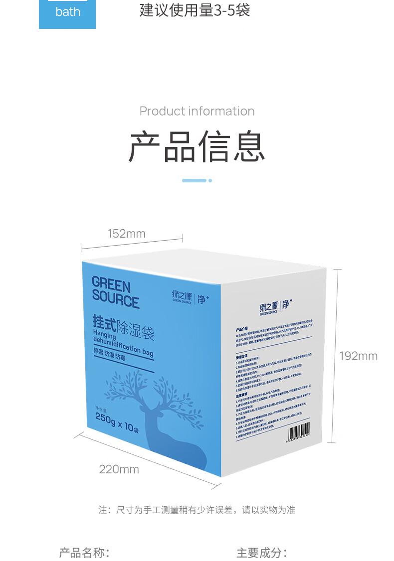 商品标题:绿之源可挂式除湿袋干燥剂10袋装(盒)