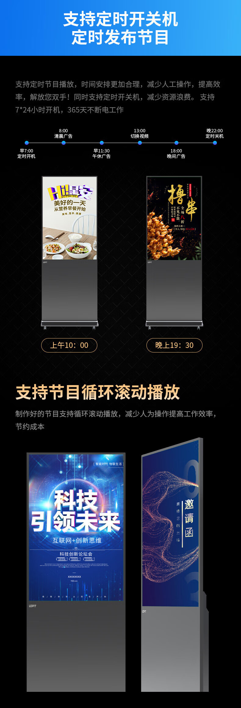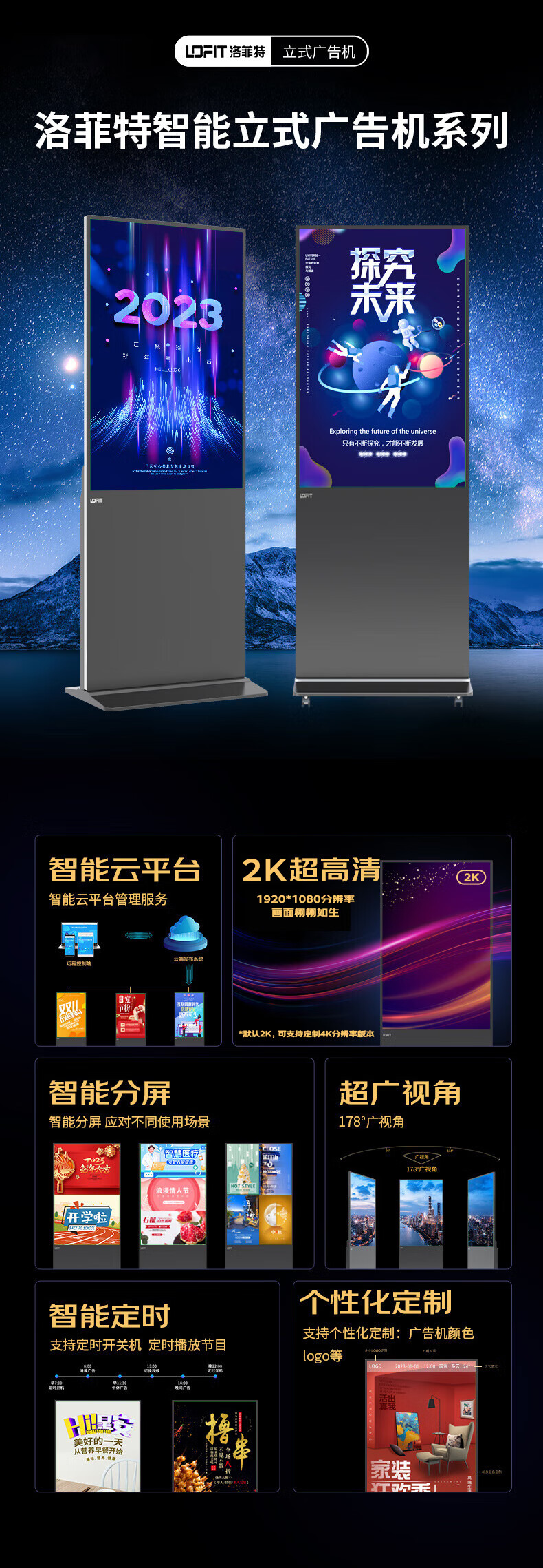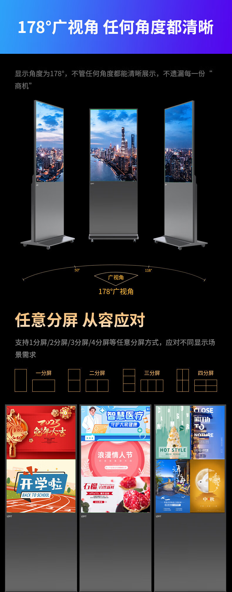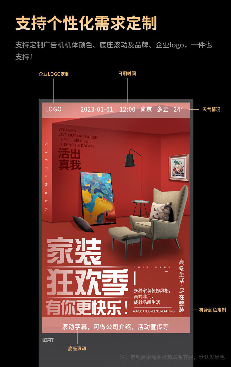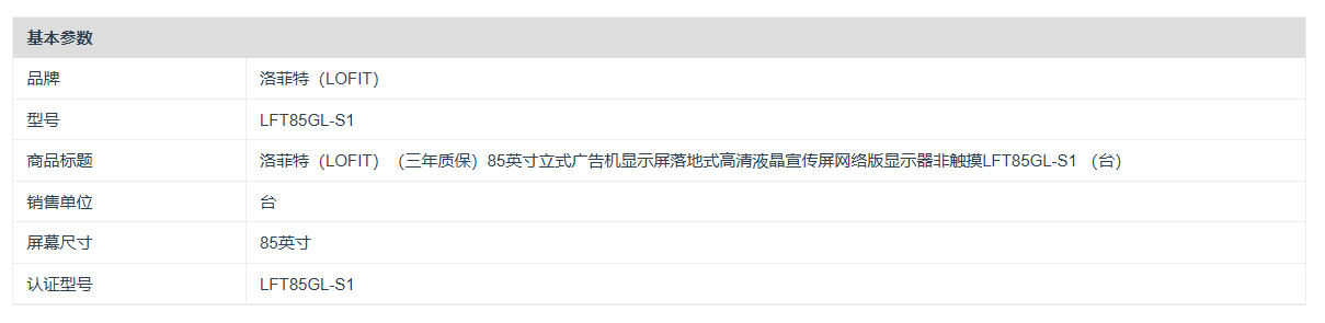 洛菲特(LOFIT)(三年质保)85英寸立式广告机显示屏落地式高清液晶宣传屏网络版显示器非触摸LFT85GL-S1 (台)