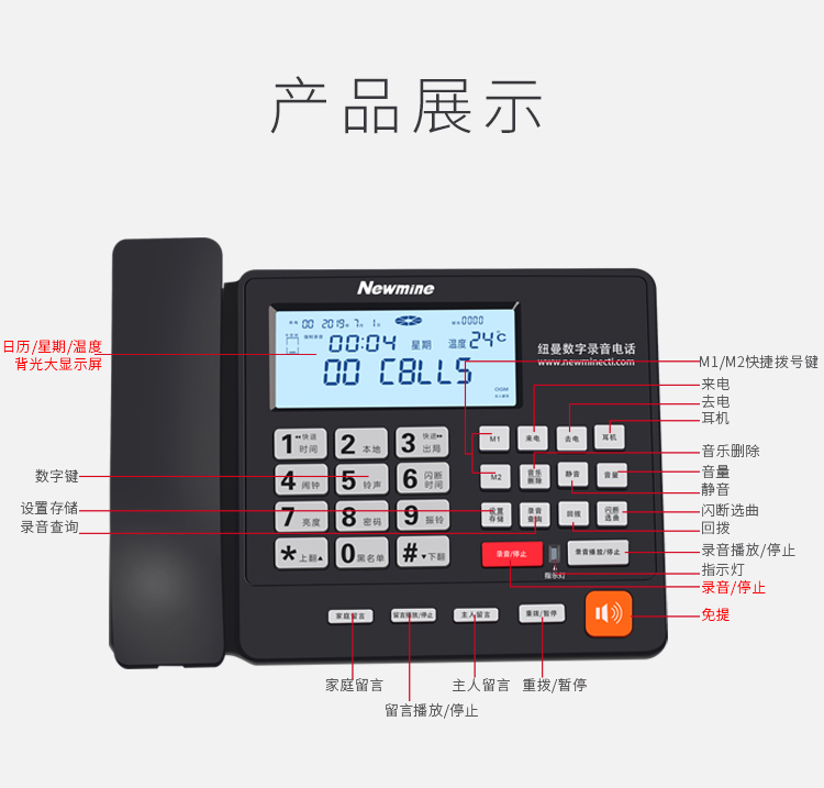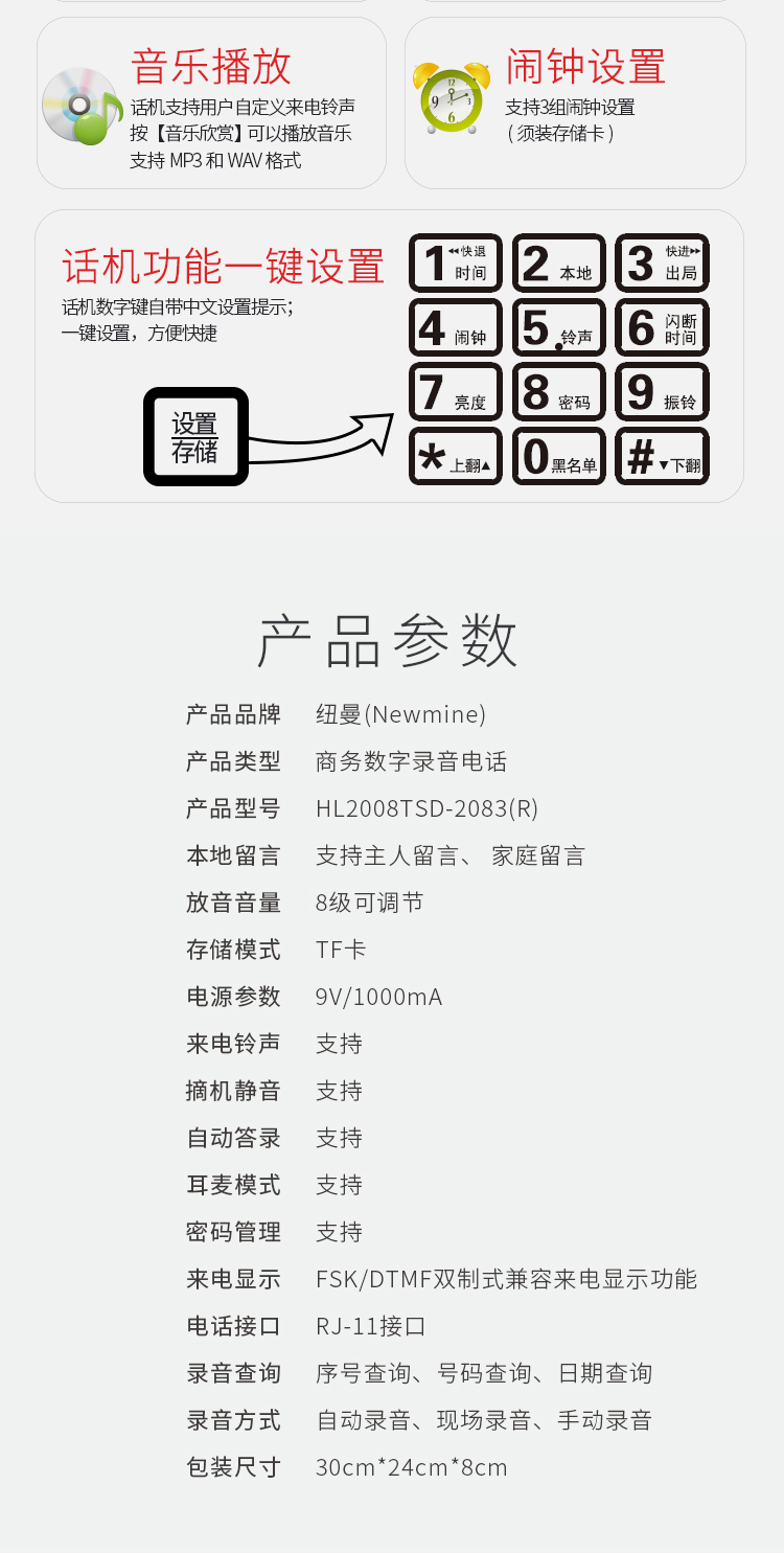 商品标题:纽曼HL2008TSD-2083(R)录音答录电话机(台)