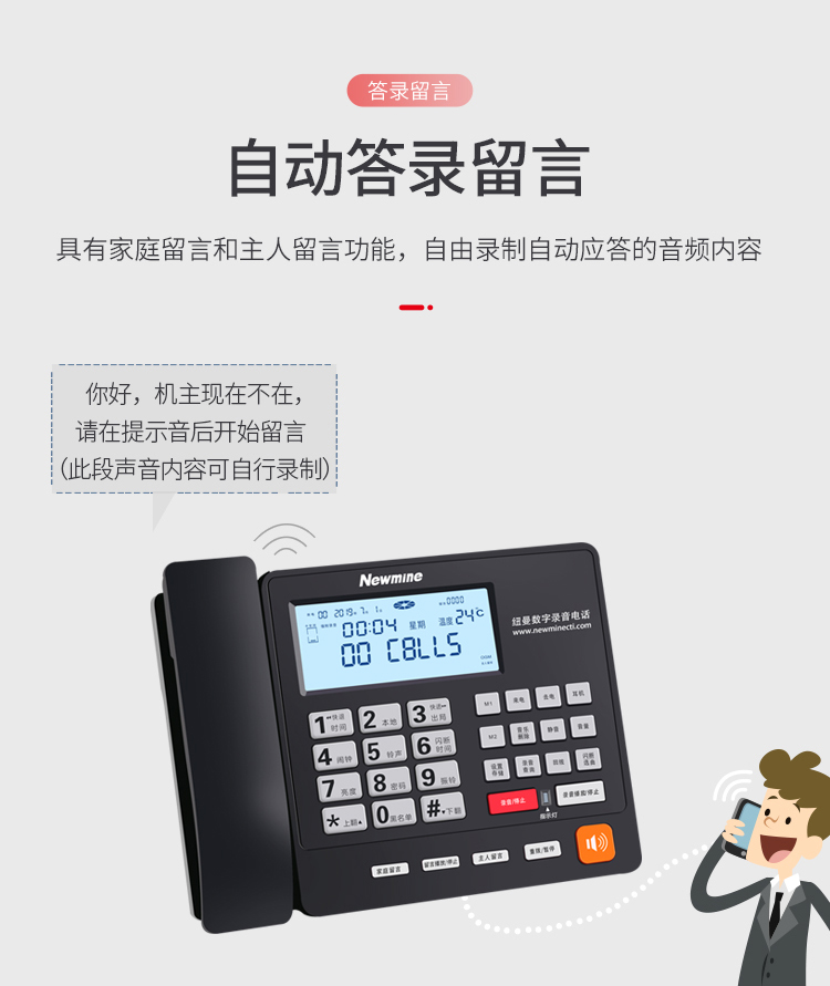 纽曼HL2008TSD-2083(R)录音答录电话机(台)