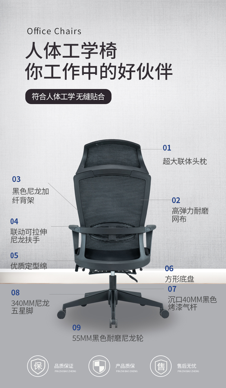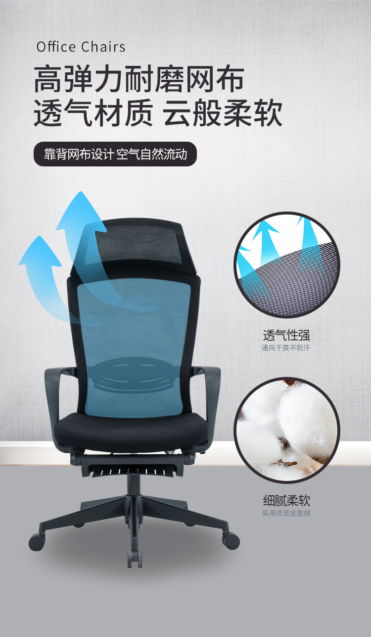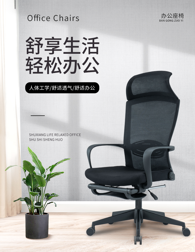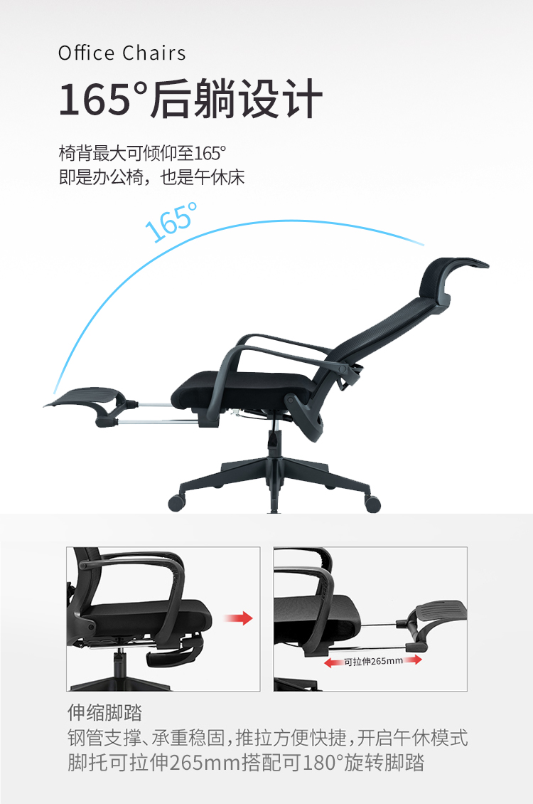 圣斯顿SU-019KT办公椅午休网椅含头枕脚踏590*625*1160-1260mm(单位:张)黑色