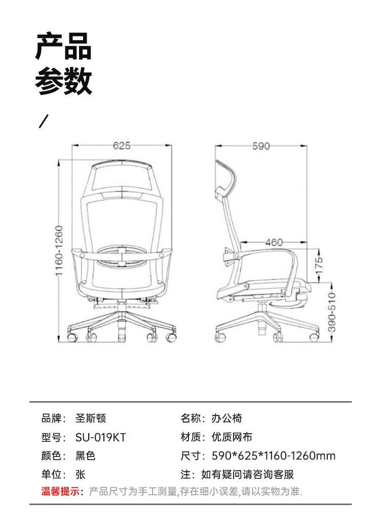 商品标题:圣斯顿SU-019KT办公椅590*625*1160-1260mm(张)黑色