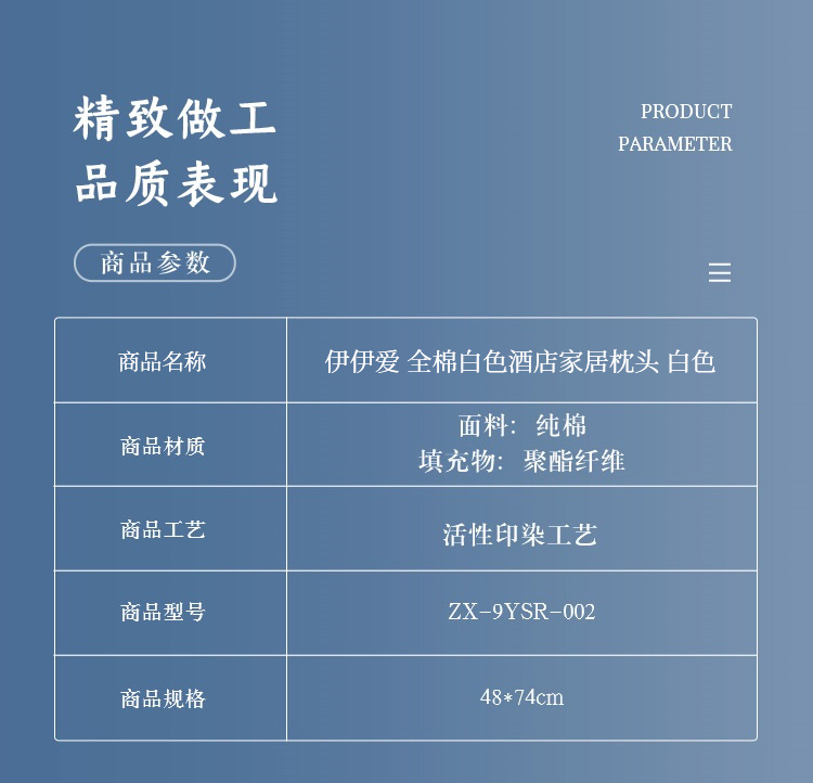 商品标题:伊伊爱ZX-9YSR-002全棉酒店家居枕头白色48*74cm(单位:个)