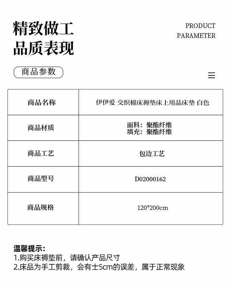 商品标题:伊伊爱D02000162交织棉床褥垫床垫白色120*200cm个
