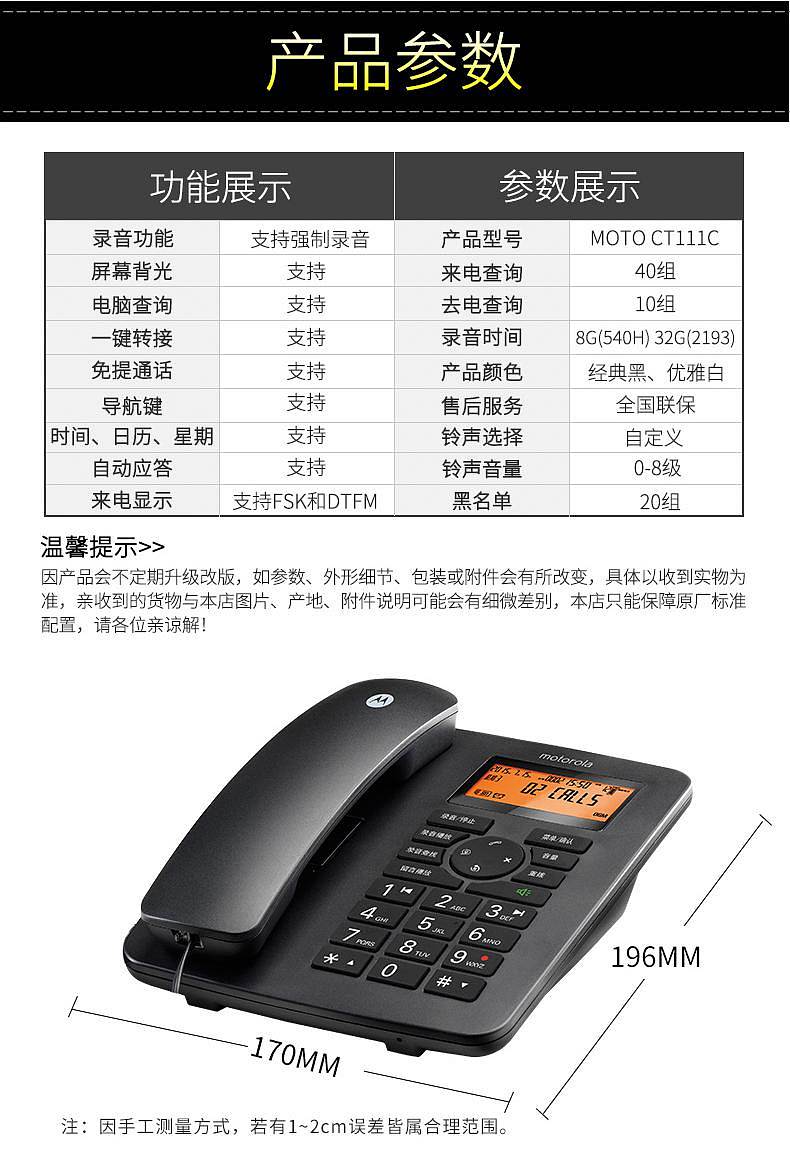 商品标题:摩托罗拉CT111C电话机黑色(台)