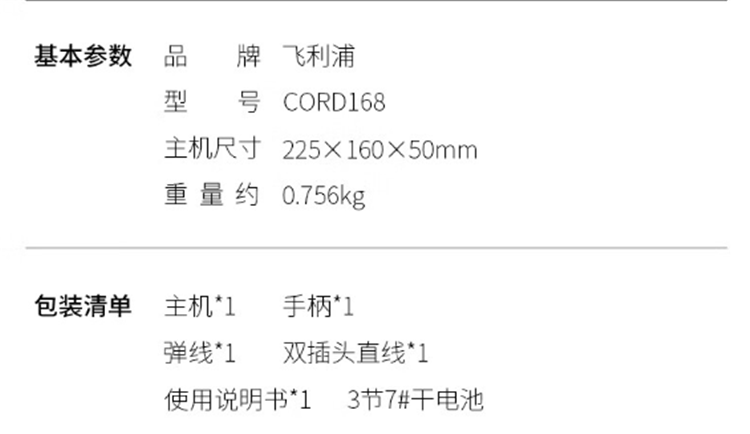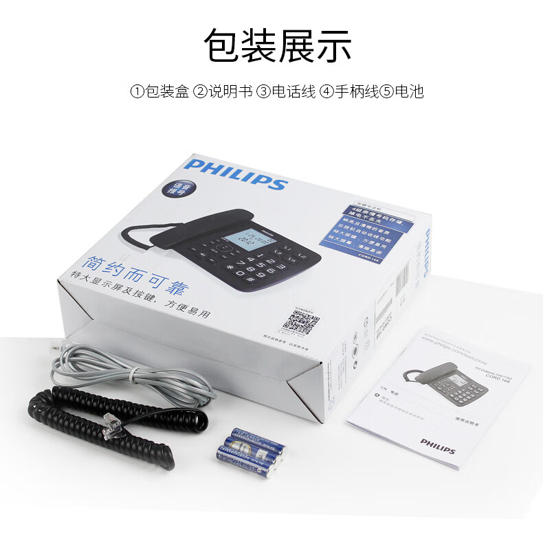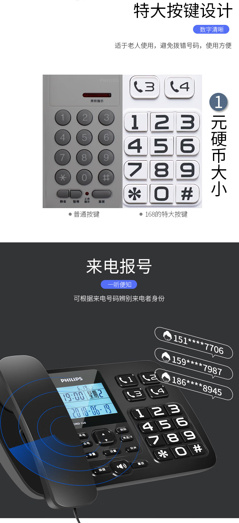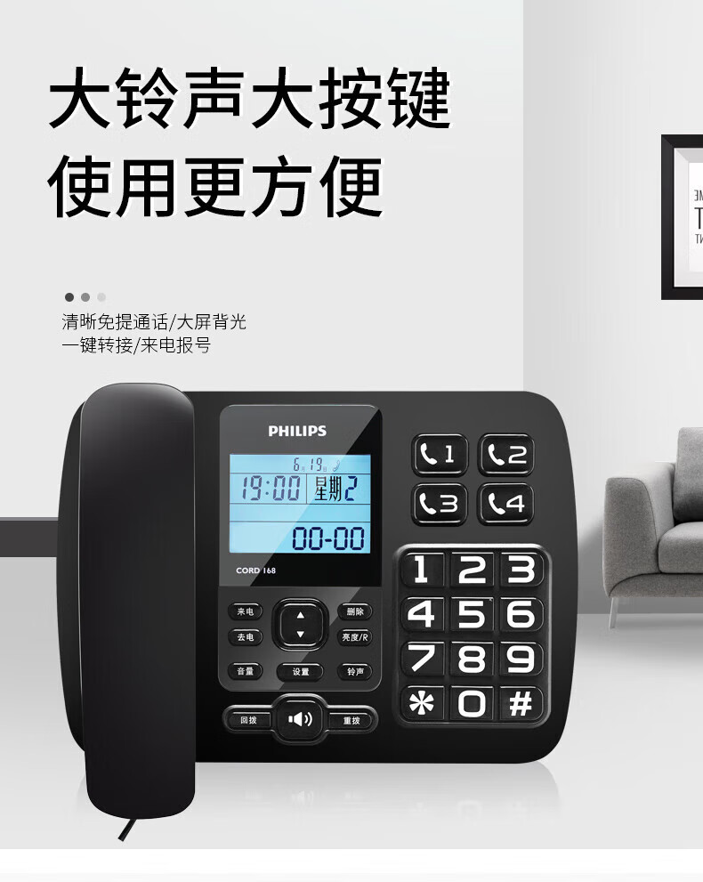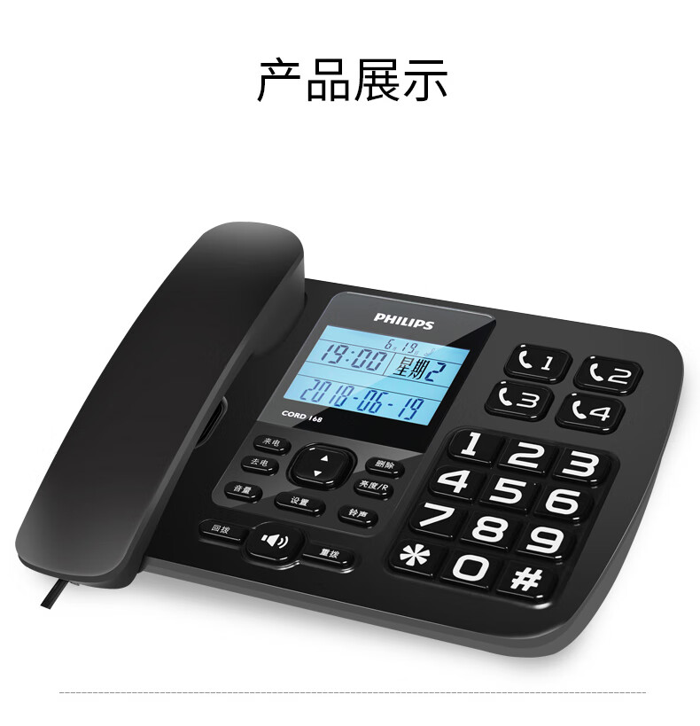 商品标题:飞利浦CORD168有线座机电话机黑色(台)