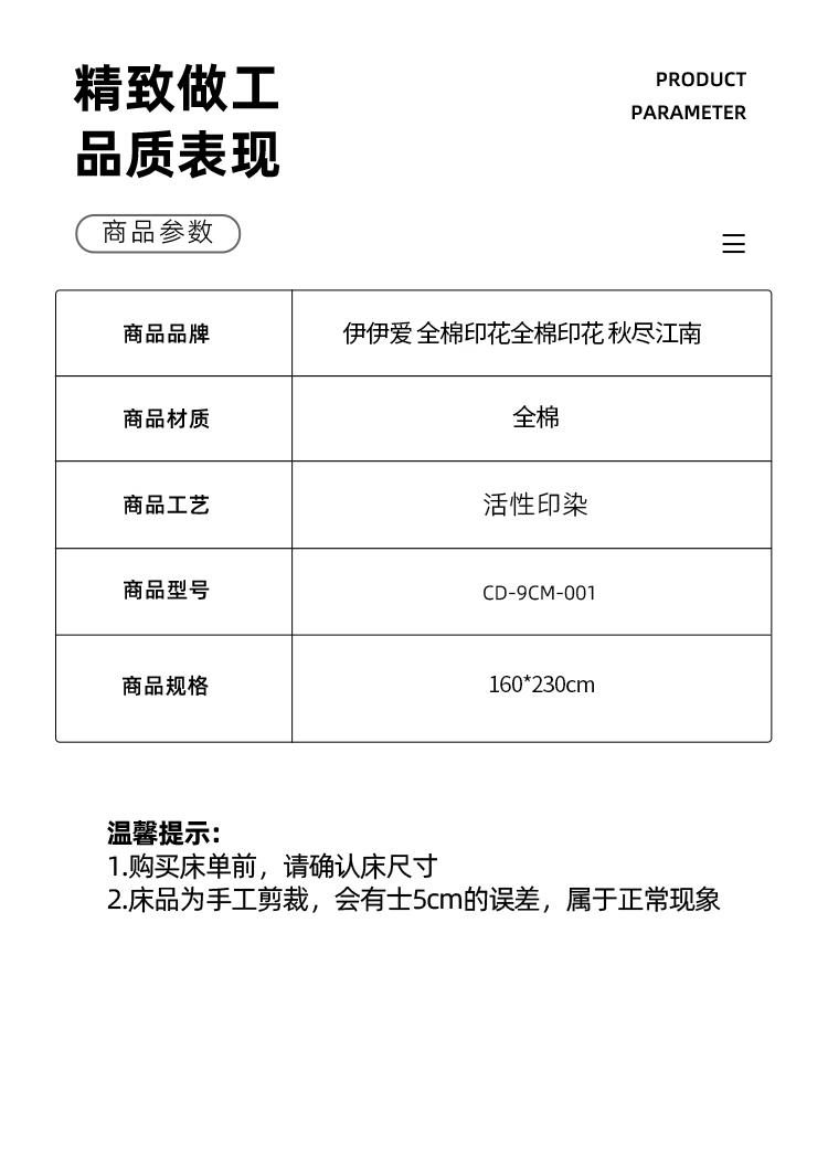 商品标题:伊伊爱CD-9CM-001全棉印花单品床单规格160*230cm*1秋尽江南(单位:条)