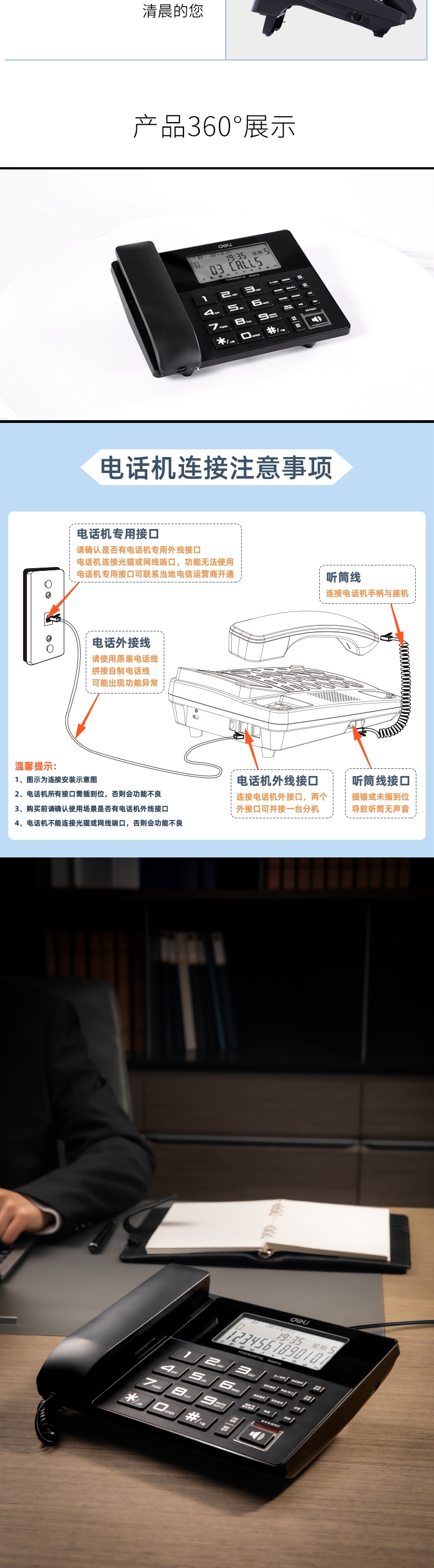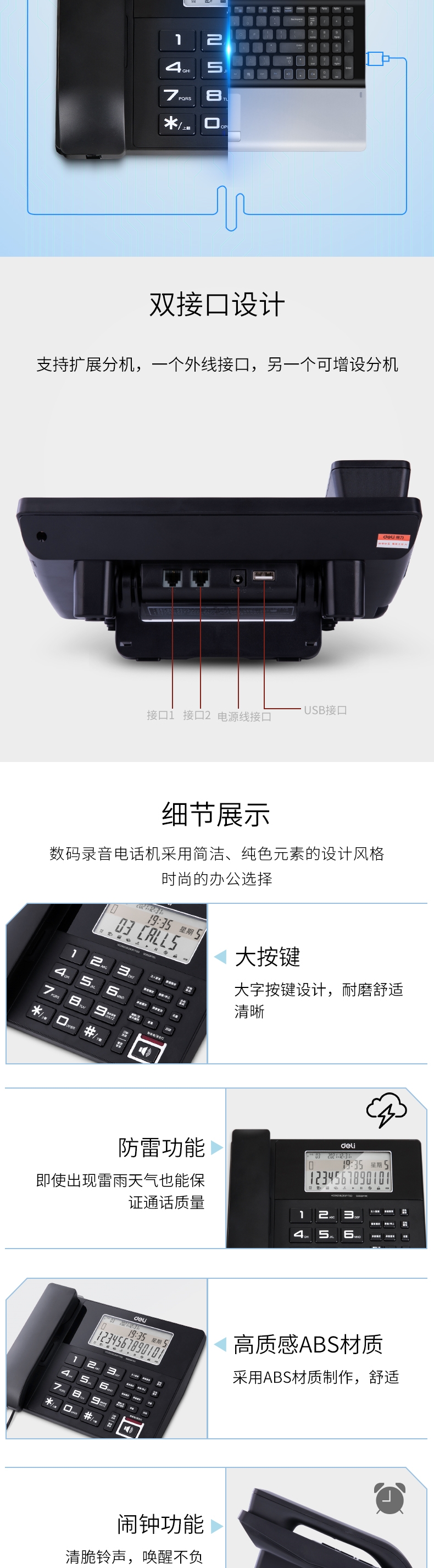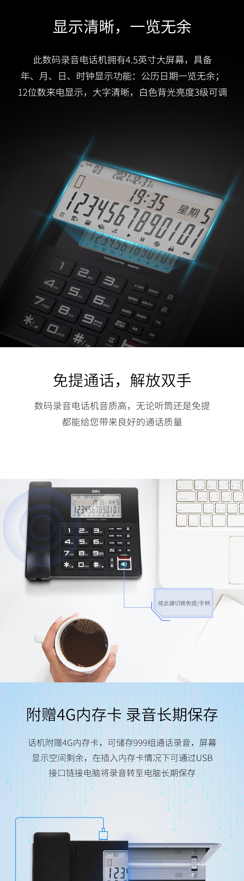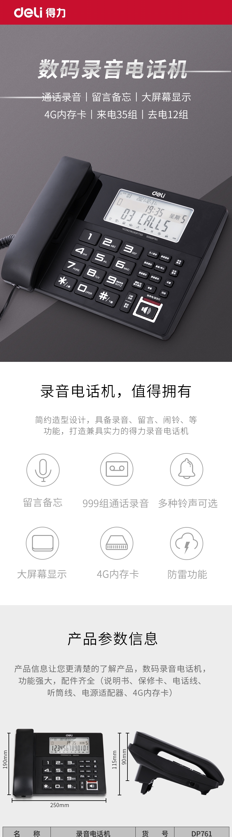 商品标题:得力DP761录音电话机(黑)(台)