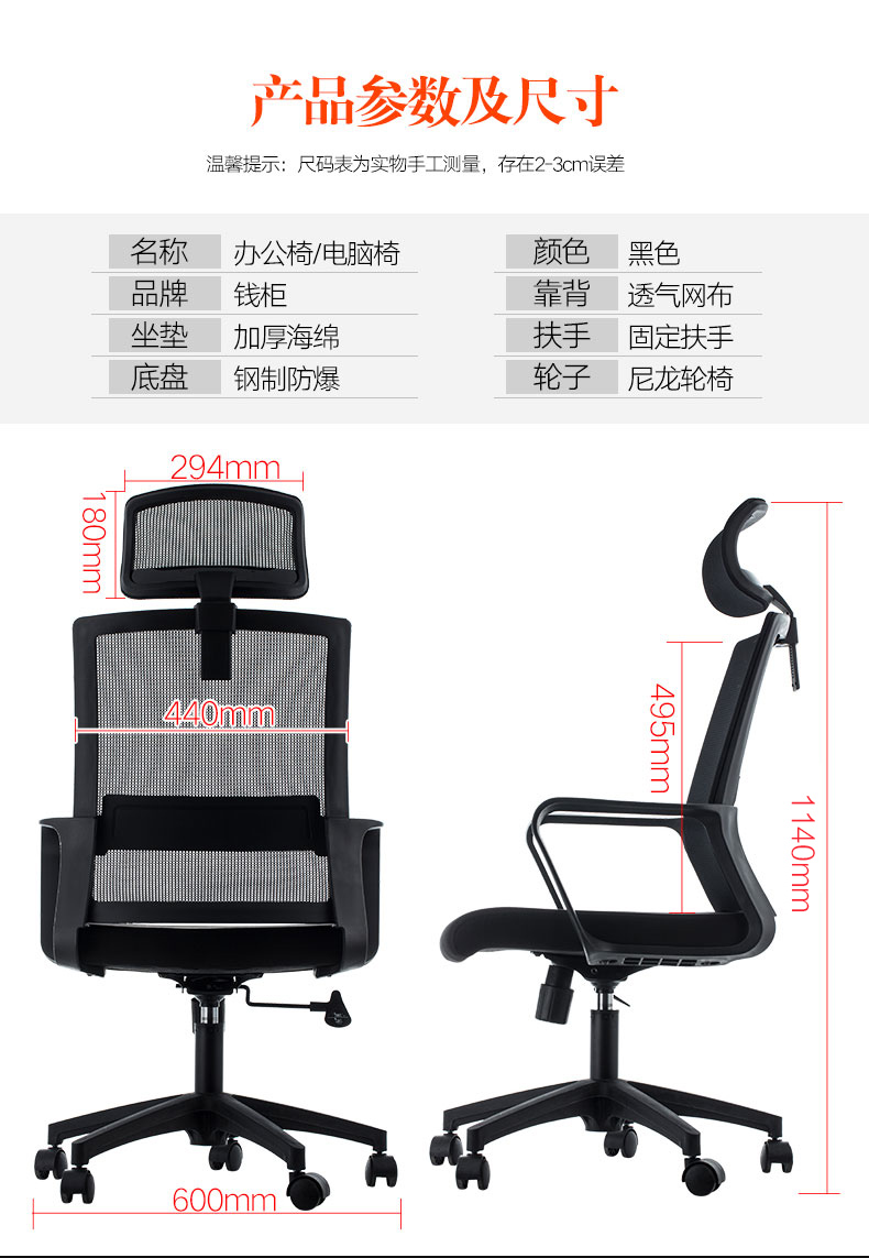 商品标题:钱柜QG100002292866经理椅人体工学椅办公椅子老板椅电脑椅1140*440*600mm(把)