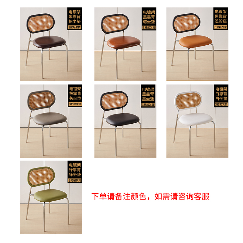 商品标题:钱柜QG202408302仿藤编铁艺复古餐椅烧烤甜品店靠背椅银架3把起发(把)