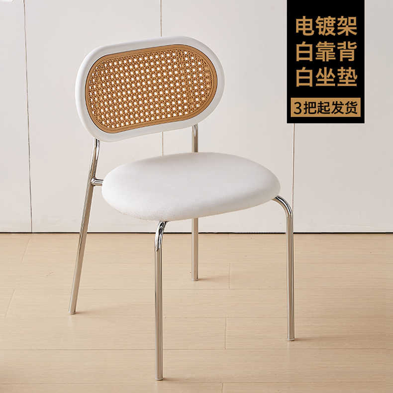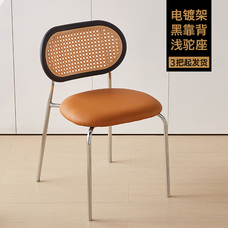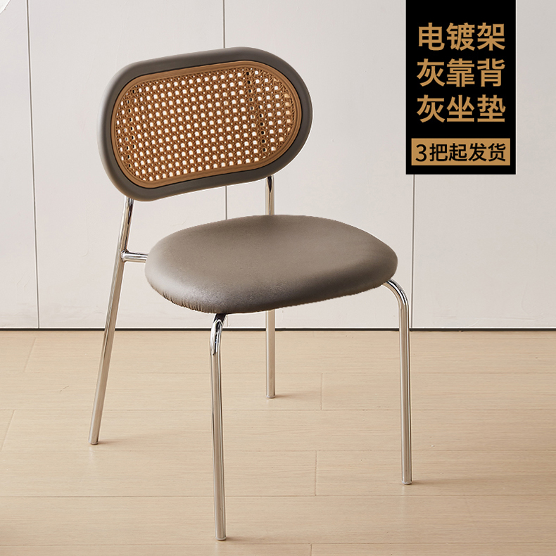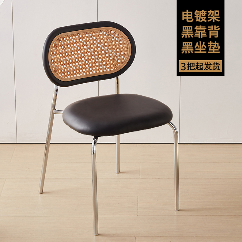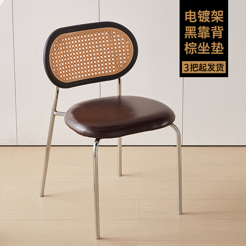 钱柜QG202408302仿藤编铁艺复古餐椅烧烤甜品店靠背椅银架3把起发(把)