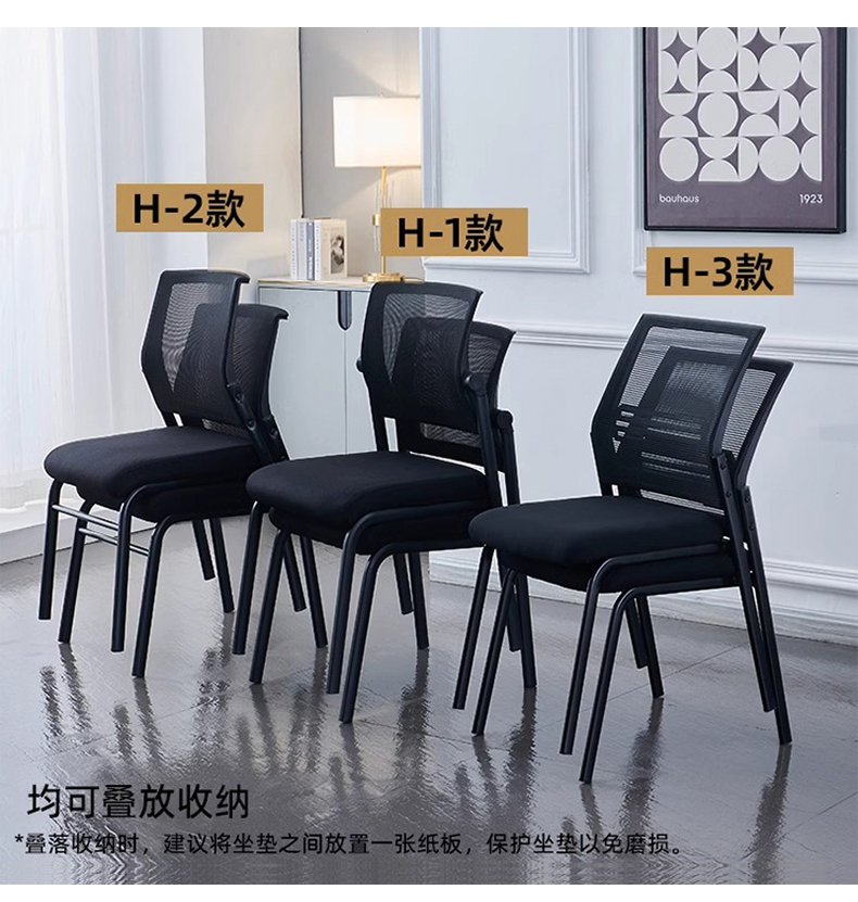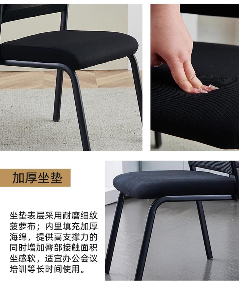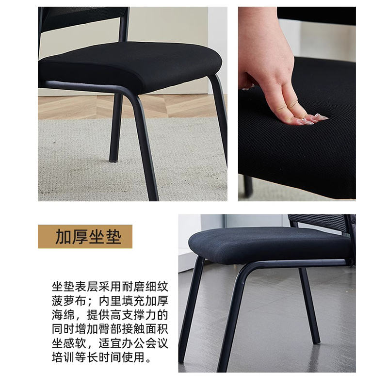 商品标题:钱柜QG202408304黑色网布四脚职员培训办公椅H-2款3把起发(把)