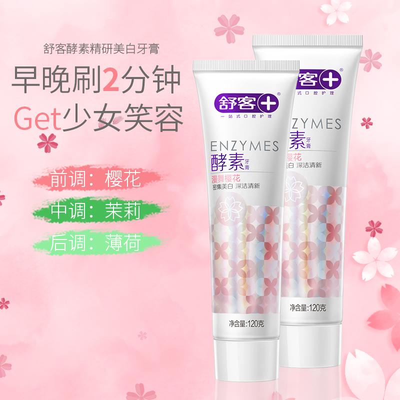 商品标题:舒客120g精研亮白酵素牙膏樱花(支)