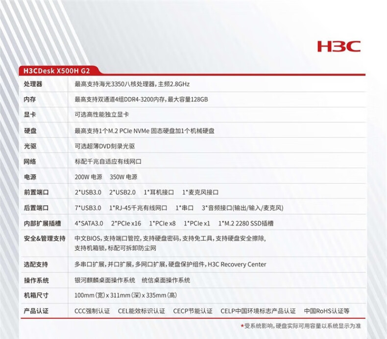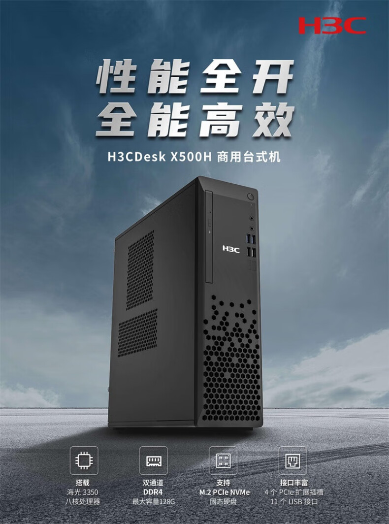 新华三 X500H G2 国产台式机电脑 海光3350/2*8G/512G SSD+1T/2G独显/DVDRW/200W/Kylin试用版/10L/3年/M4-245F 23.8寸显示器 (套)