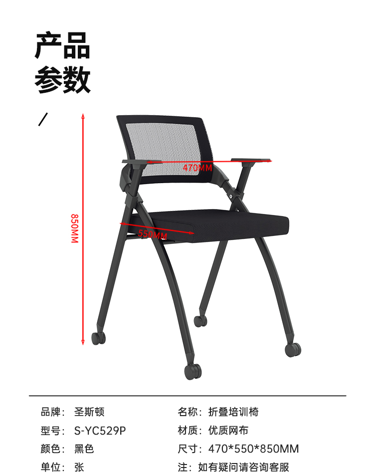 商品标题:圣斯顿S-YC529P折叠式培训椅会议椅470*550*850mm(张)黑色
