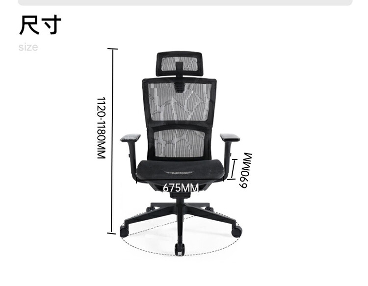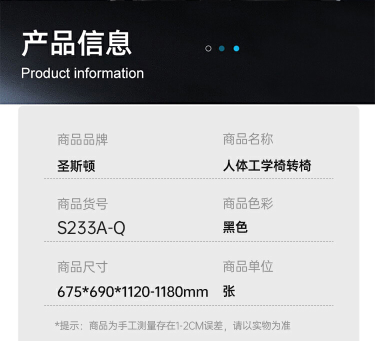 商品标题:圣斯顿S233A-Q黑色全网人体工学椅转椅675*690*1120-1180mm(张)黑色