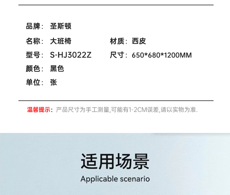商品标题:圣斯顿S-HJ3022Z中式油漆黑色西皮大班椅办公椅650*680*1200mm