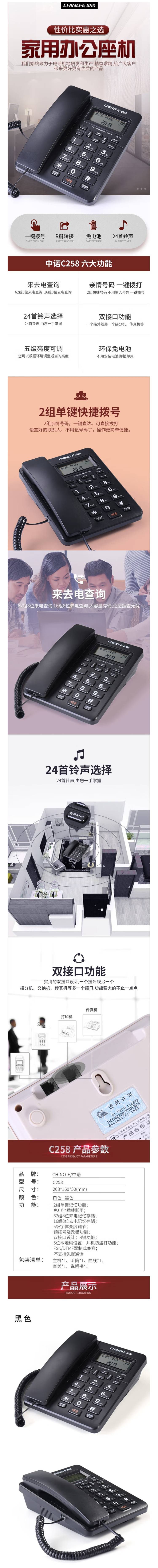 商品标题:中诺(CHINO-E)C258有线座机电话机黑色(台)