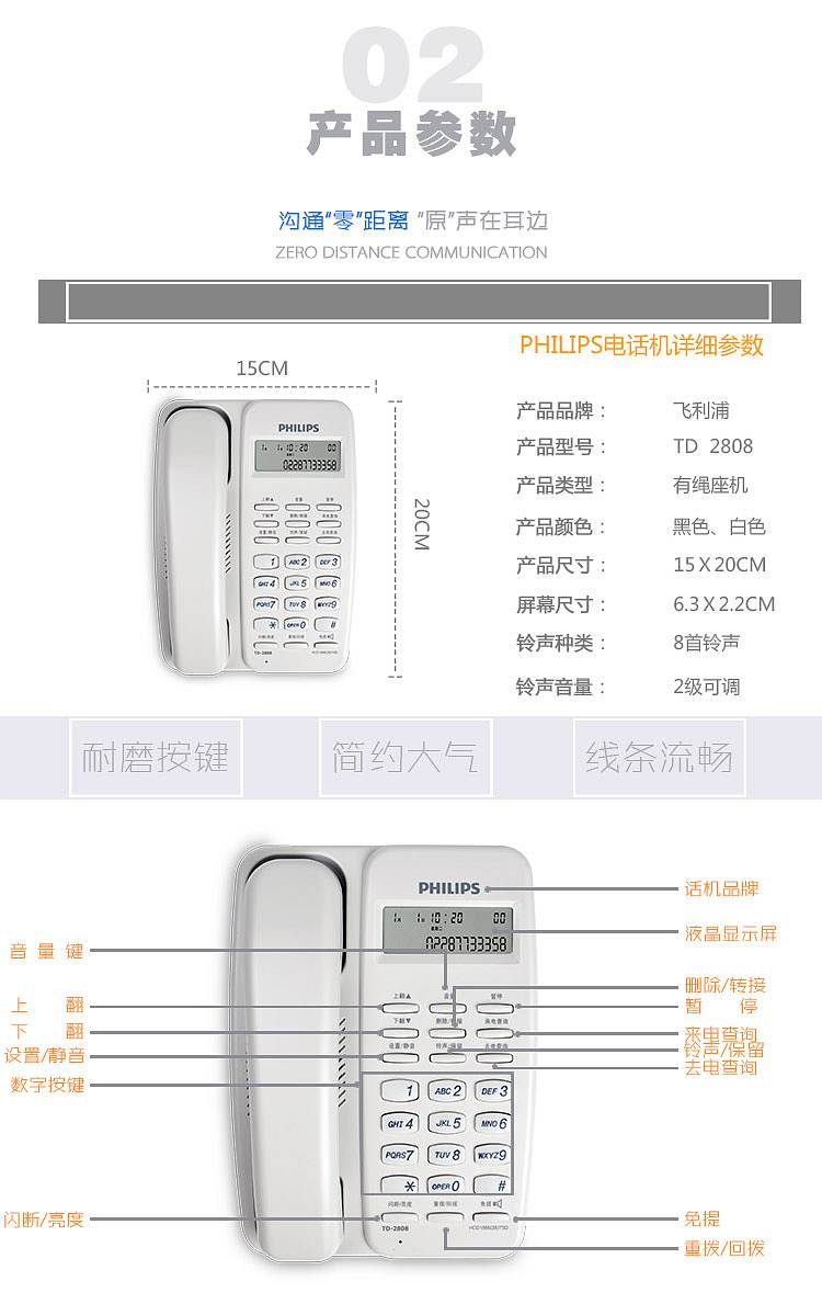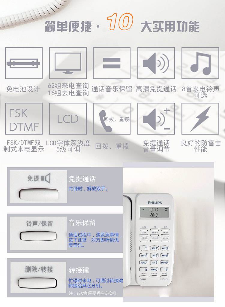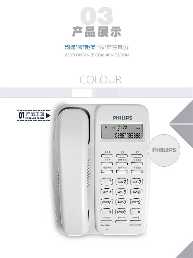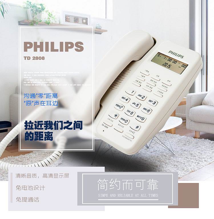 商品标题:飞利浦TD2808有绳电话机白(台)