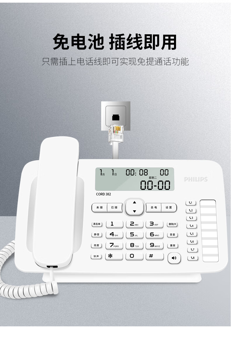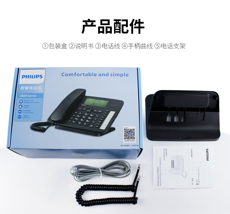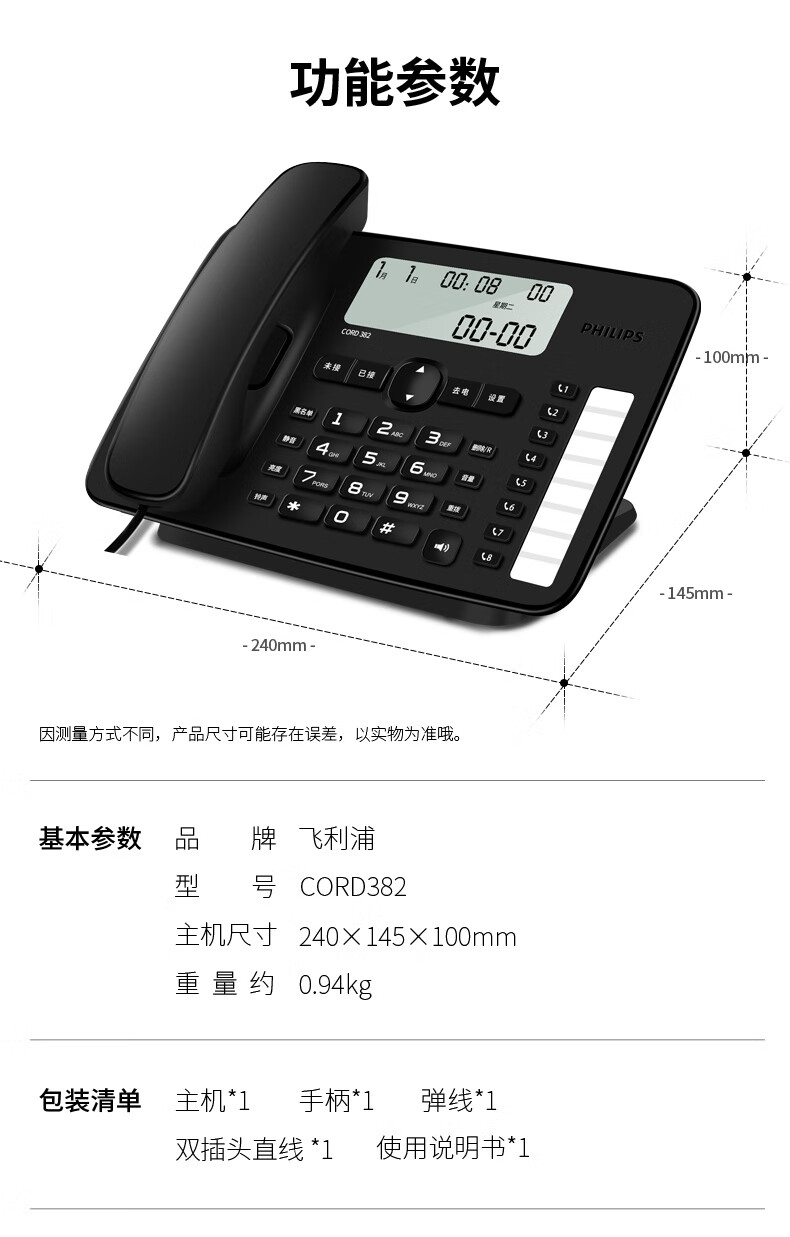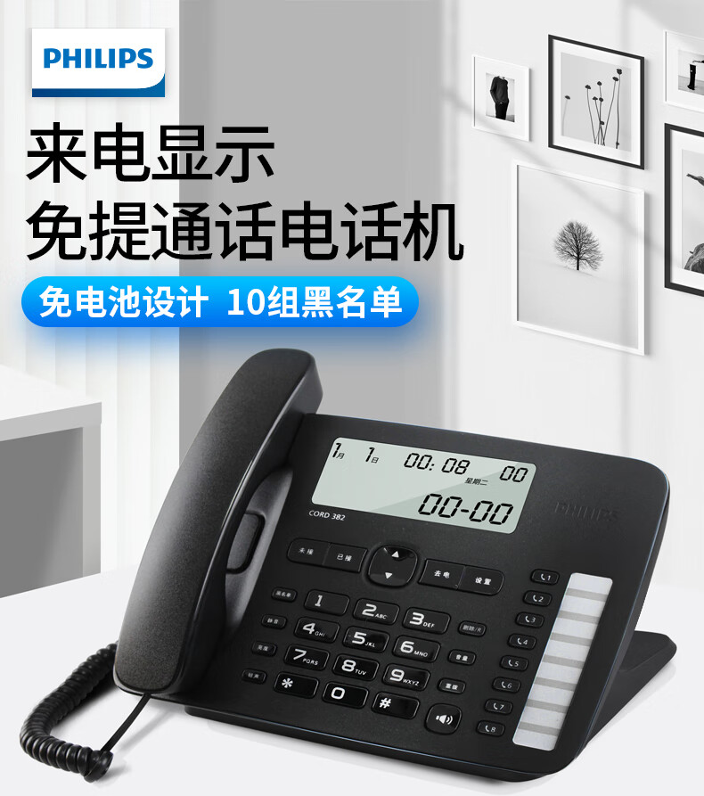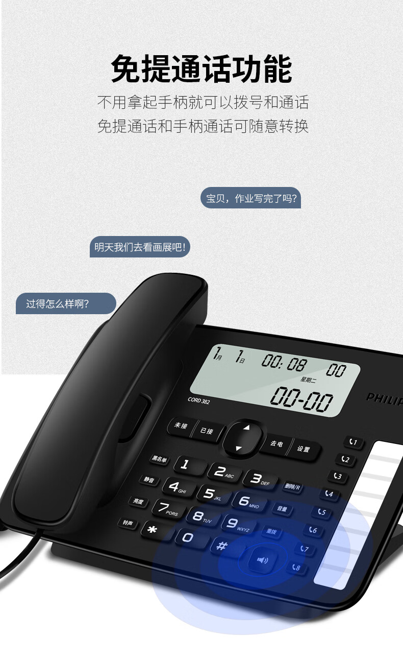 商品标题:飞利浦(PHILIPS)CORD382 黑色 电话机座机 (单位:台)