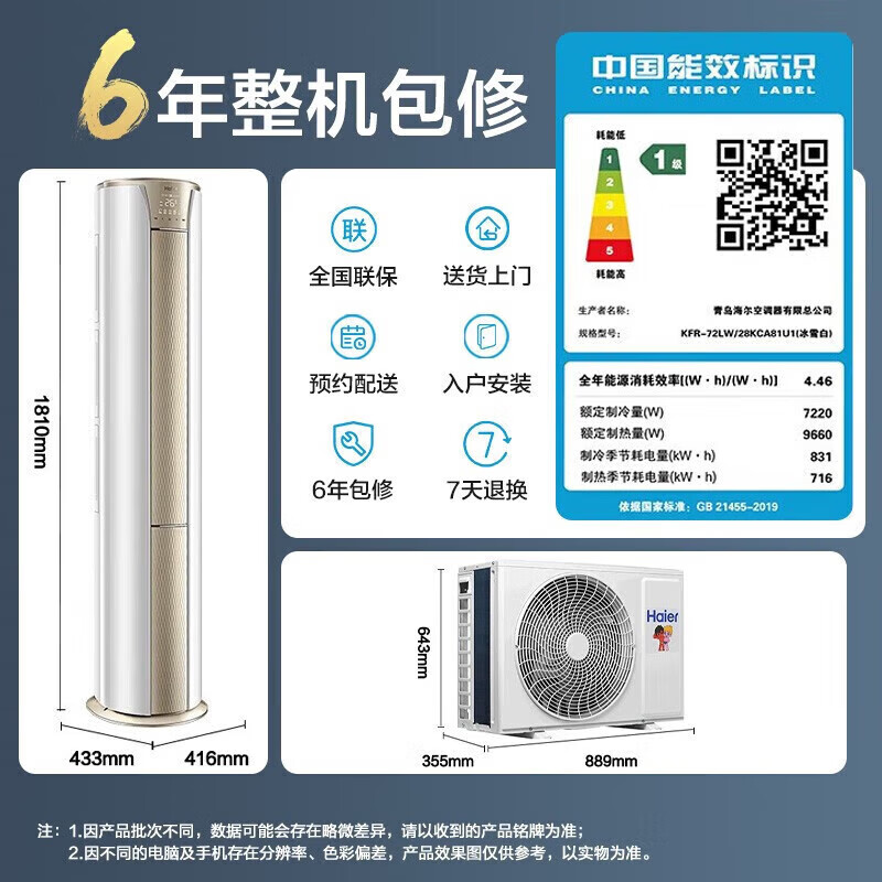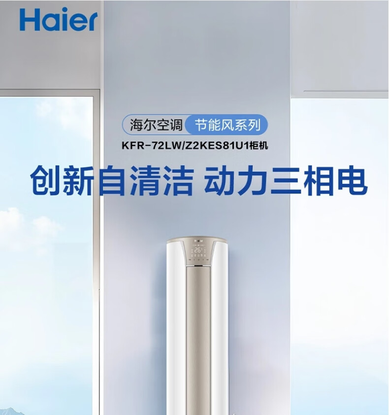 海尔(Haier) KFR-72LW/Z2KES81U1 变频冷暖 一级能效 3匹 立柜式空调 (计价单位:台) 白色标准安装