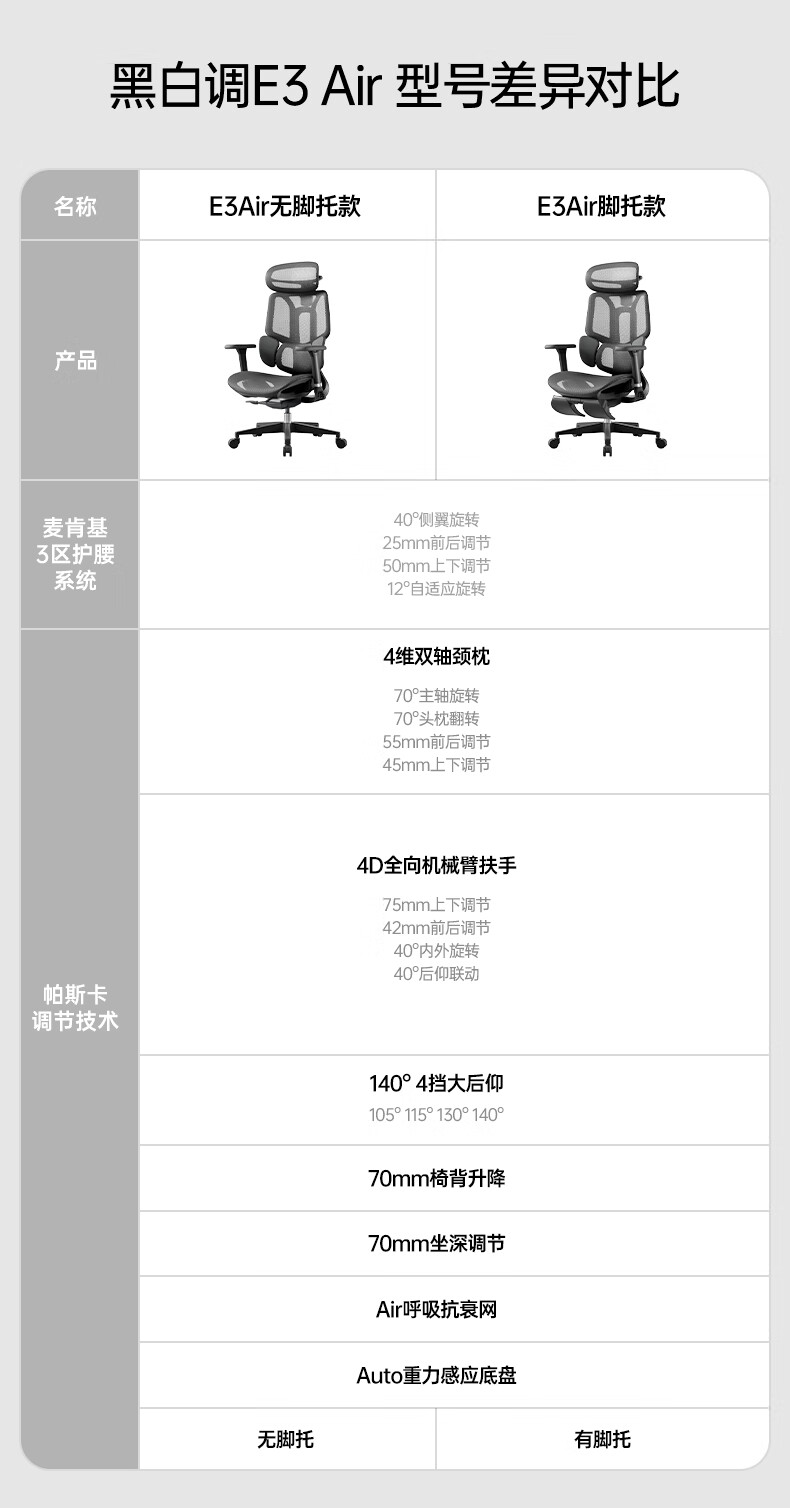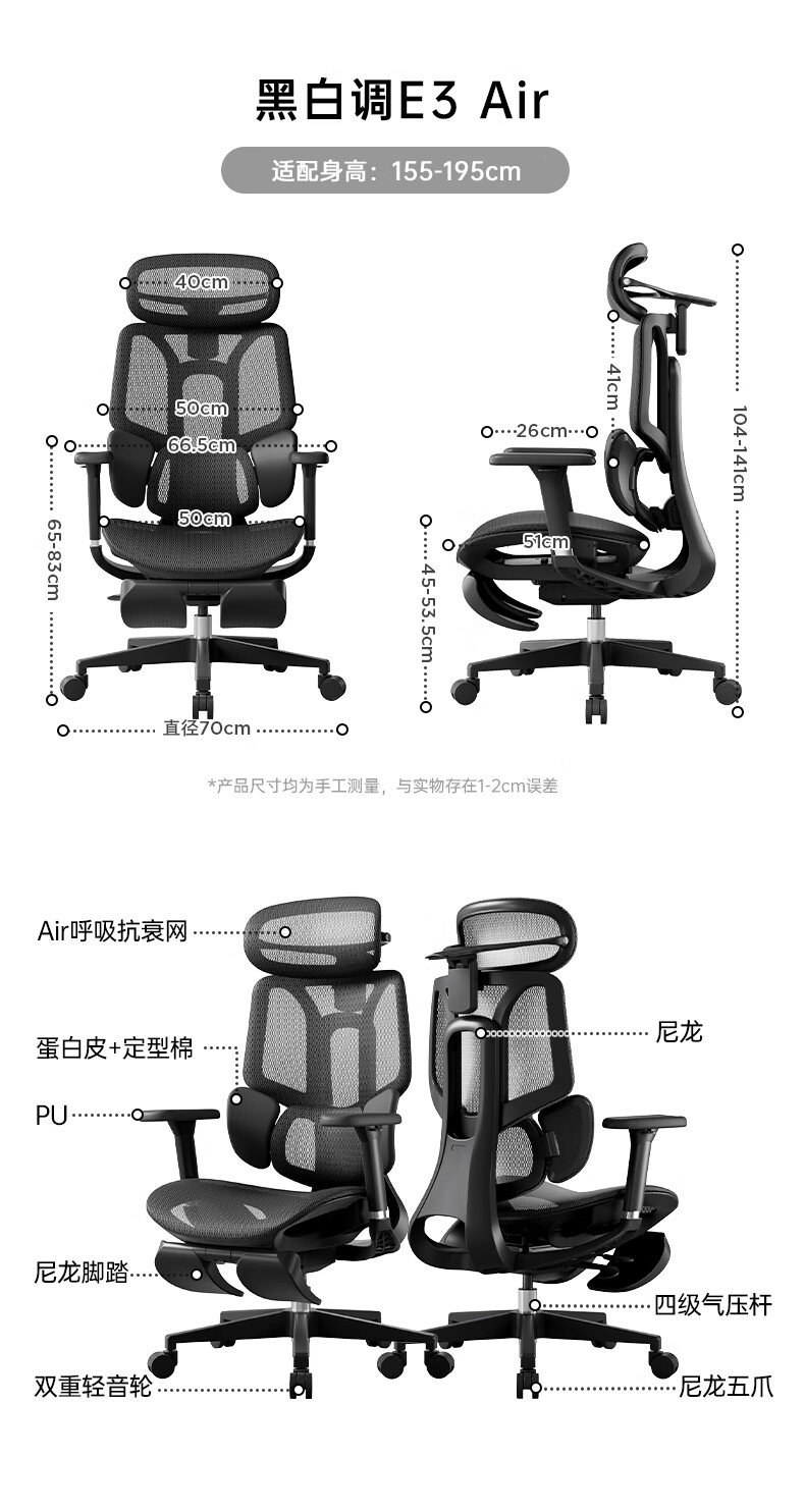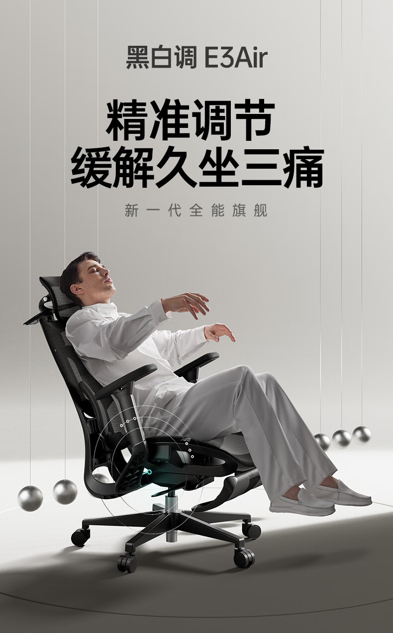 黑白调E3Air 耀黑有脚托人体工学椅E301BVF 4代Air【4D扶手+4D头枕】(单位:把)