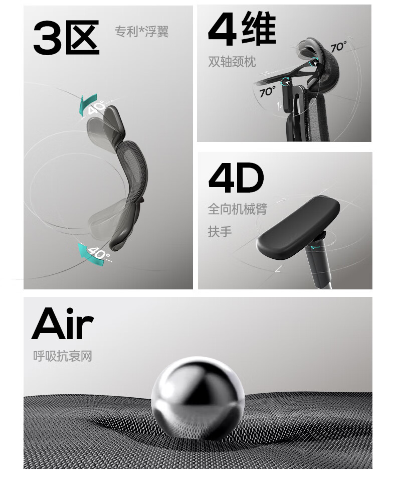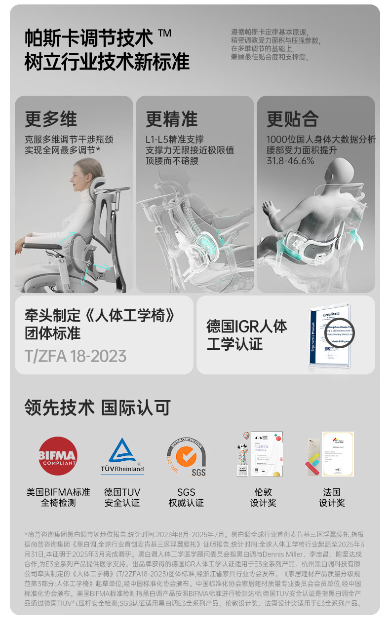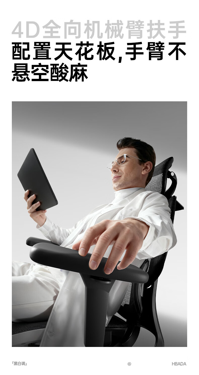 黑白调E3Air 耀黑有脚托人体工学椅E301BVF 4代Air【4D扶手+4D头枕】(单位:把)