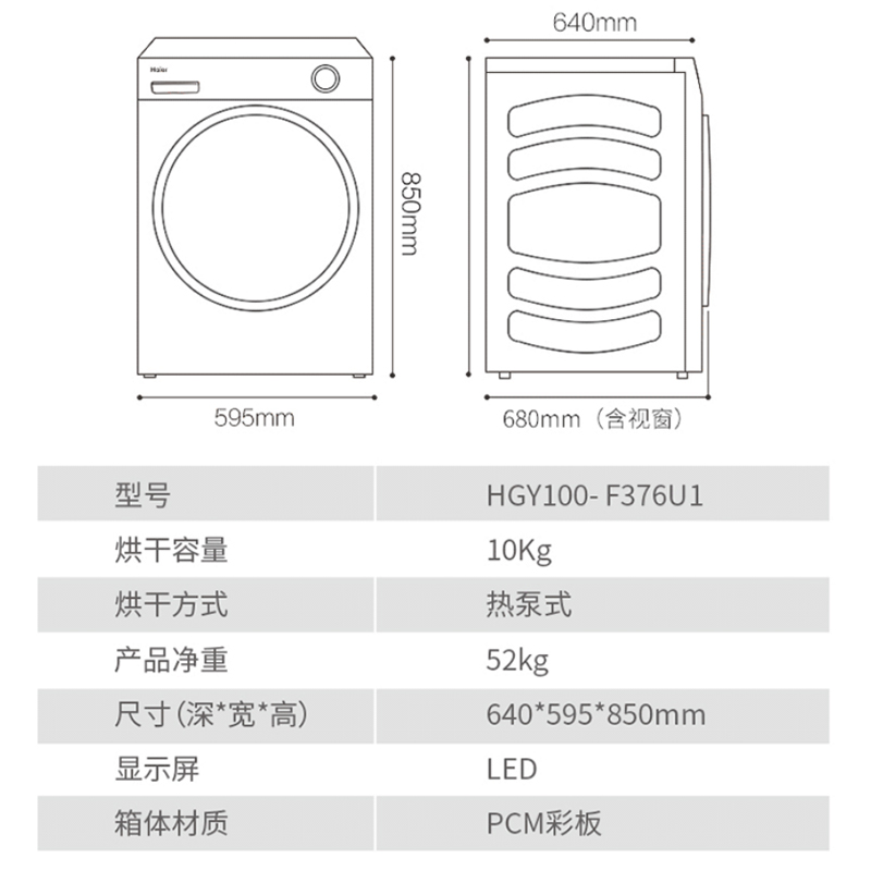 海尔(Haier)HGY100-F376U1 云溪376双擎热泵烘干机 10KG家用干衣机 养护空气洗 杀菌祛螨除潮 一级能效(台)