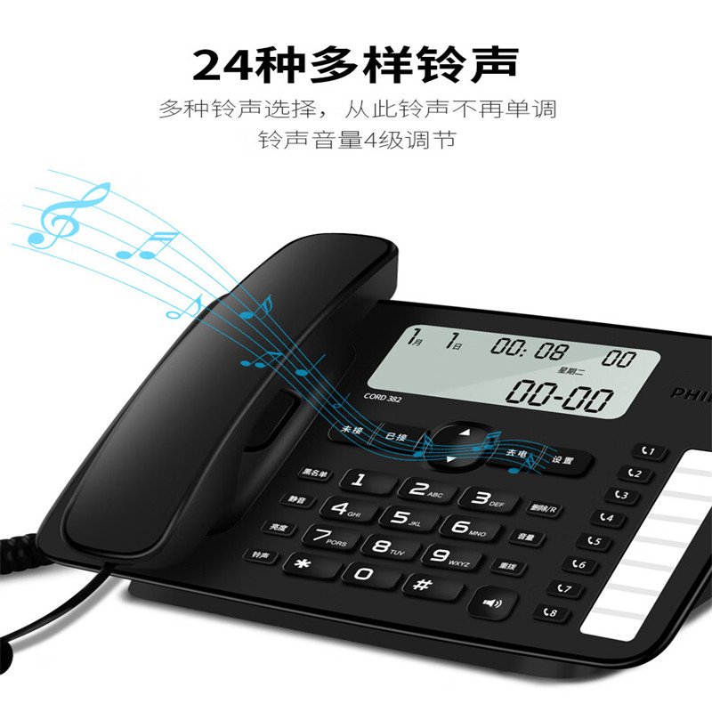 飞利浦(PHILIPS)CORD382 黑色 电话机座机 (单位:台)