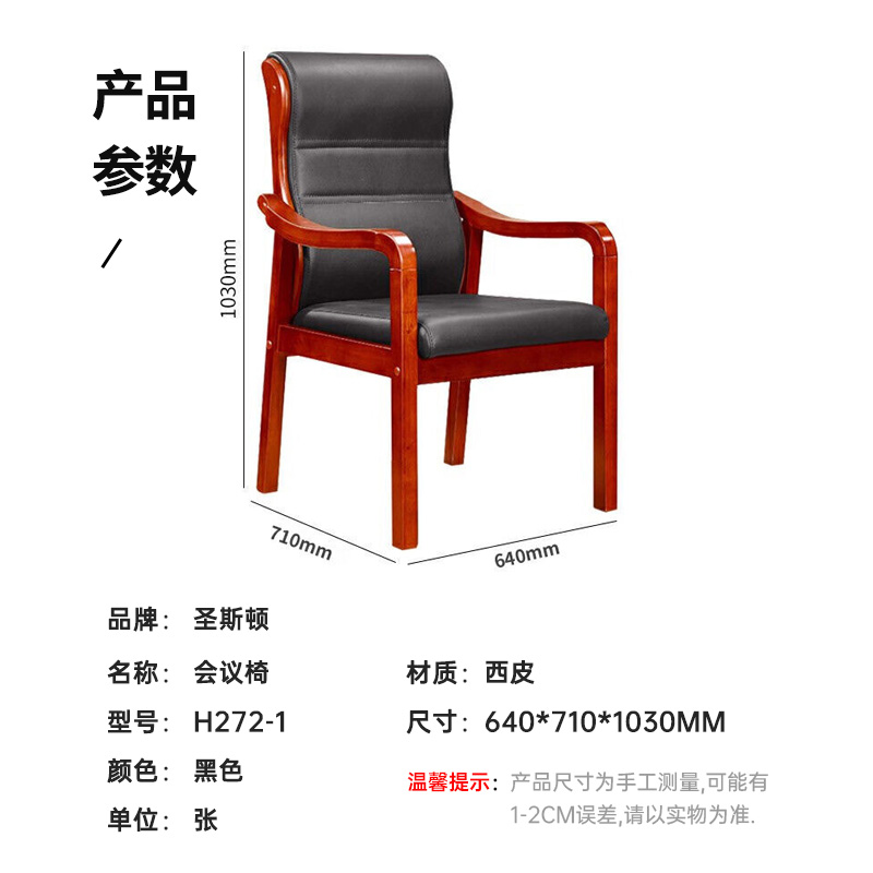 圣斯顿H272-1黑色西皮实木办公椅会议椅640*710*1030mm(单位:张)黑色