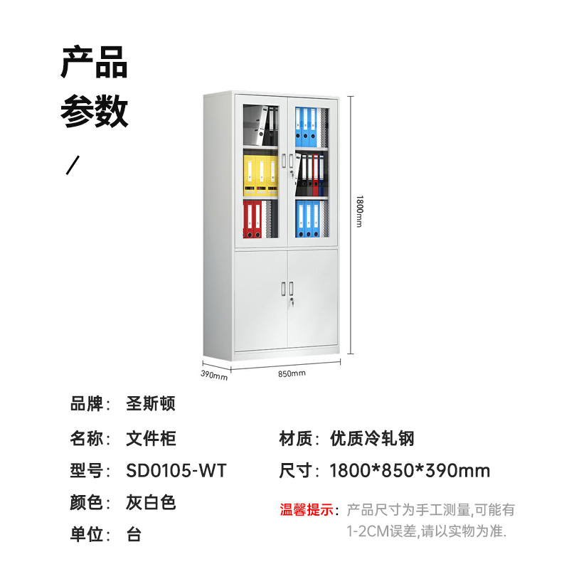 圣斯顿SD0105-WT文件柜灰白色180*85*39cm(整装)板材厚度0.5mm(组)