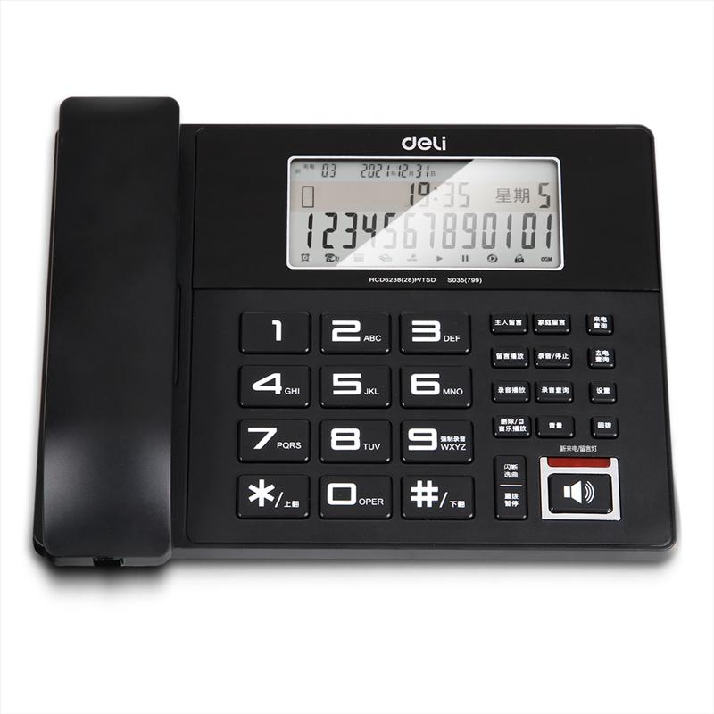 得力(DELI)录音电话机固定座机 来电显示 4G内存卡TF卡 799 黑(台)