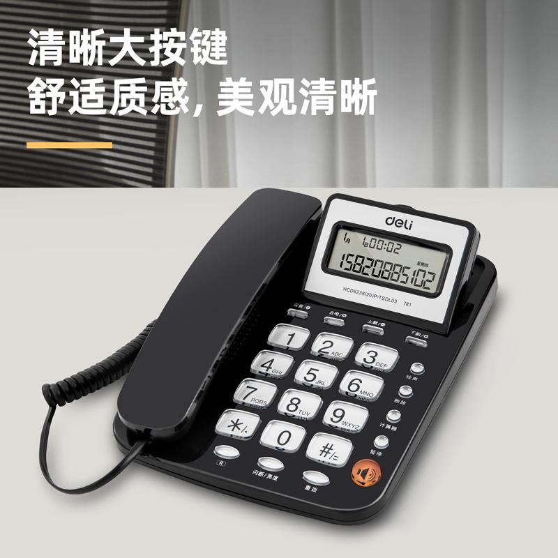 得力(deli) 电话机座机 固定电话 45°倾角 亮度可调 13560黑 (台)